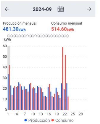 En la etapa final de pruebas nos separamos de la red por 30 días, durante todo el mes de septiembre para corroborar el funcionamiento correcto en off-grid. Luego de 23 días de pruebas encontramos que la combinación entre el sistema de generación fotovoltaico y la potencia de almacenamiento plantea un balance adecuado para soportar los mayores picos de potencia sin depender de la red.
